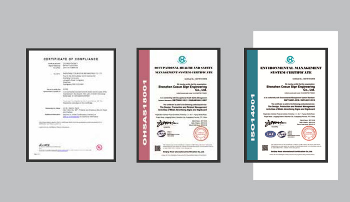 柯赛标识拥有专业的标识深化设计团队、标牌工程团队和销售团队,工厂面积达38000+平方米,以及500多台专业生产设备,实现了标识系统生产的专业化、标准化、模块化。柯赛标识在深圳宝龙专精特新产业园区投资建设了集合研发总部、创新实验室和智能标识新基地。联合调研考察、打包物流、安装施工等全产业链条服务,通过成熟的项目沟通和责任管理机制,打造品质发光字工程并快速按期交付。