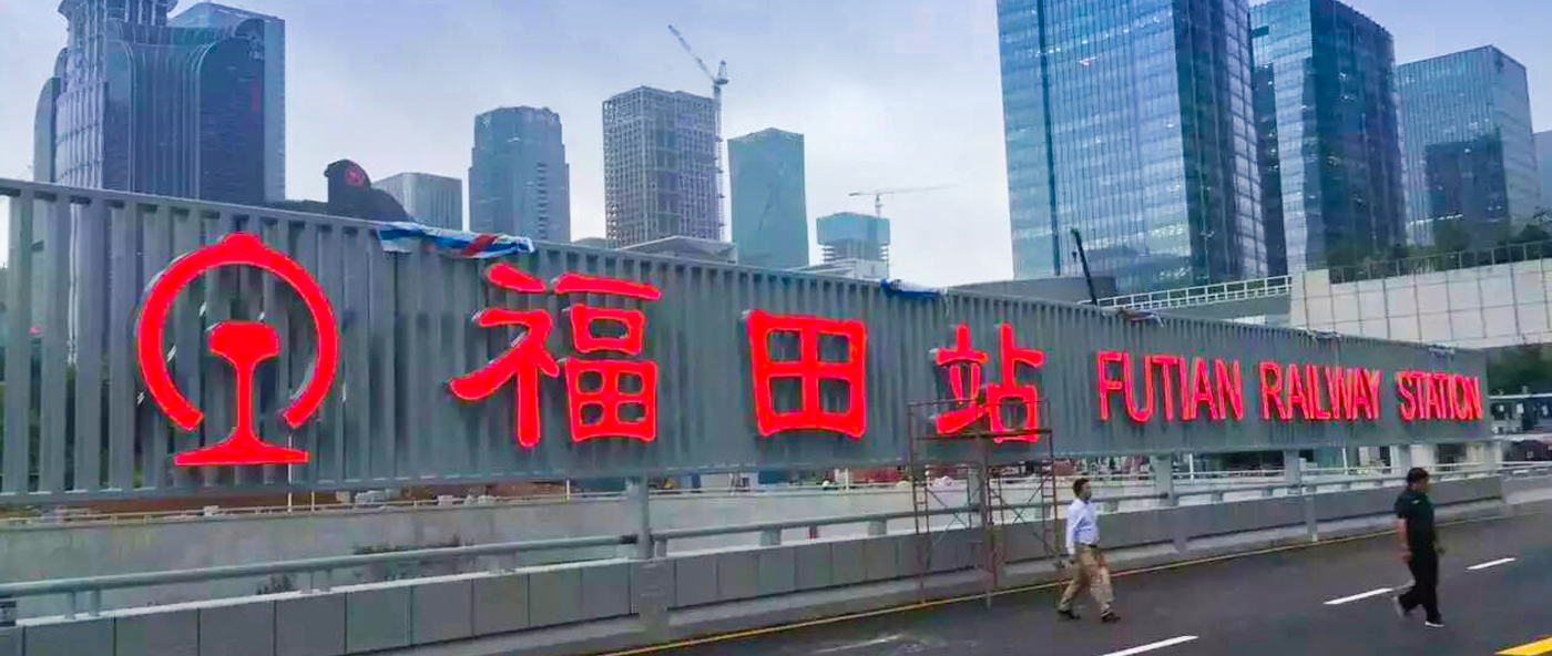 福田站是亚洲最大、全世界列车通过速度最快的地下火车站。福田高铁站「LED发光字项目」交通抠纽工程以广深港客运专线深圳福田站为中心,汇集地铁1、2、3、4、11号线等城市轨道交通线路,以及公交首末站、小汽车及出租车接驳场等常规交通设施及配套,定位为国内大型地下铁路车站、珠三角重要的城际交通抠纽。
