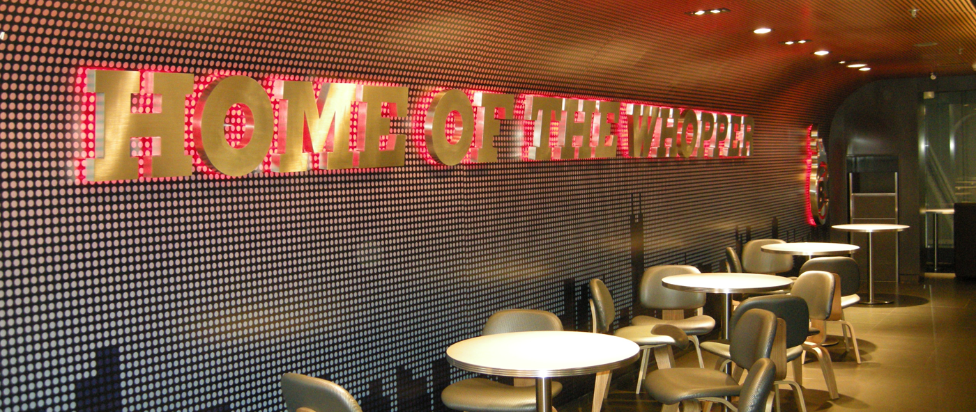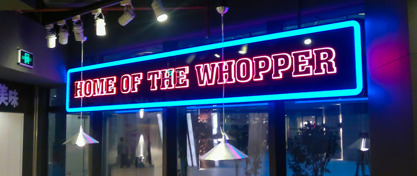 Burger King是美国最大的fastfood连锁之一,和Mc和KFC号称三巨头。1954年,詹姆士·麦克拉摩(James Mclamore)及大卫·艾杰敦(David Edgerton)在美国佛罗里达州迈阿密共同经营创设第一家“汉堡王”(Burger King)餐厅「LED发光字项目」。经过无数次的失败和教训,终于将一家寒酸的小店变为拥有上千家分店,资产达数十亿美元的商业帝国,成为流行文化不可或缺的一部分。