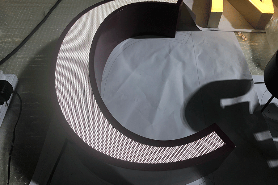 现如今高楼林立,各种各样的大型企业、房地产楼盘、酒店等到处林立,如何让人一眼就能识别自己的标识及名称呢?冲孔发光字就是一个很好的选择,冲孔发光字又叫LED钻孔字、LED穿孔字、LED外露发光字,是对镀锌铁皮板材或者不锈钢板等进行冲孔加工作业,而后加穿LED外露灯,最终形成色彩鲜明,亮度高的广告字效果。冲孔发光字有以下四大分类: