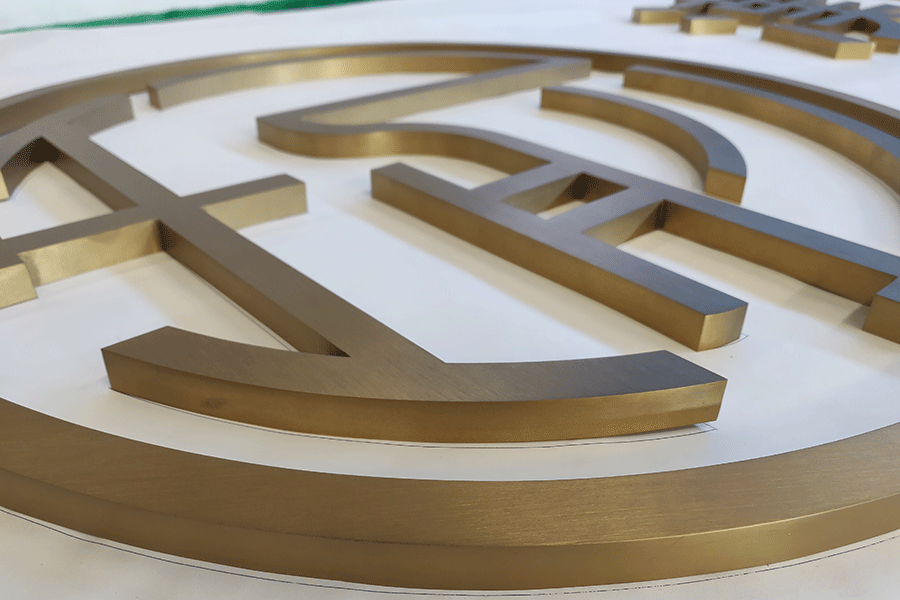 3,板材制作时需求用到铝塑边条扣住面板和围边联接才行,一般铝塑边条比较简略老化,时刻一长就简略褪色变形,不好掌握。型材就相对好些,它不需用铝塑边条,材料形状就有直角扣边,可以直接扣住面板来做,用这种材料做出来的金属字效果不错,不过在折弯需求开口的当地要处理好,开口大了需求添加补料。