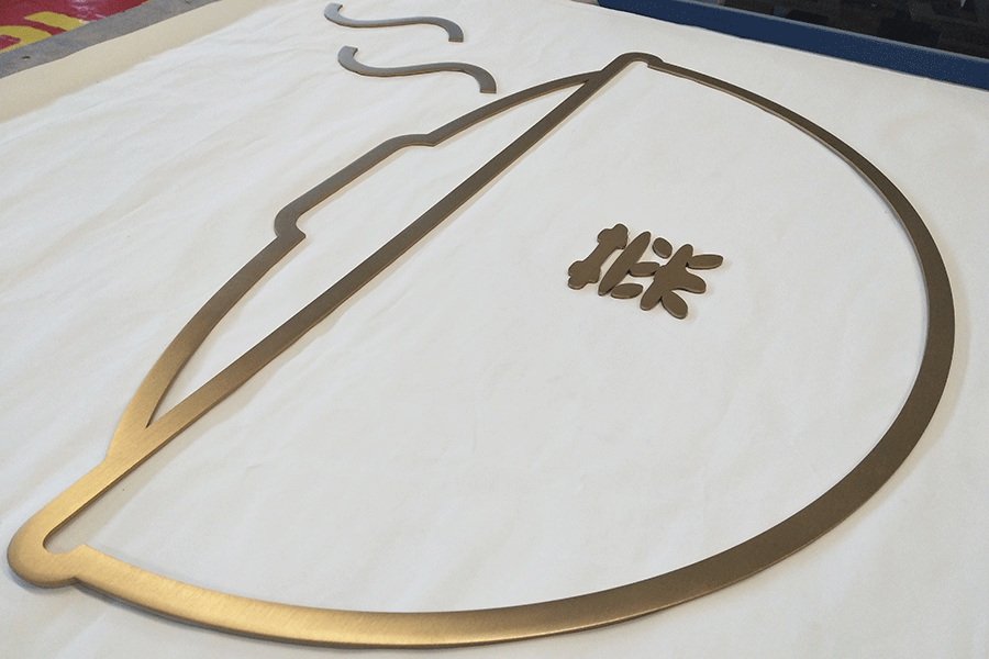 2,不锈钢字选用不锈钢作为主要原材料,再经切开,弯字机折弯,打磨,包边,抛光等工艺流程制作而成的发光标识。拉丝不锈钢字制作所选用的是拉丝板,经过激光切开或数控水切开后,折弯围边焊接,打磨抛光包边而成,外表具有一同的拉丝金属质感。另外,镜面不锈钢字制作所选用的是镜面板,经过切开、弯字机围边等工艺而制成,而且字的外表具有镜面般的效果,生动活泼、极其诱人。而镀金箔不锈钢字制作所选用的是一般钢板,制作成型后,再经过贴金工艺,使它具有黄金般的严峻典雅。
