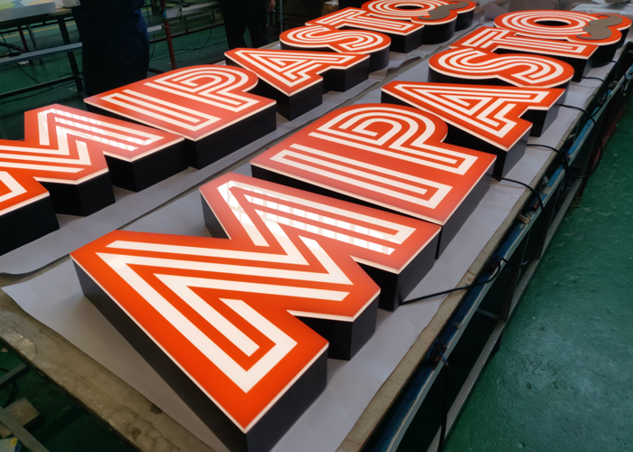 最常见的是不锈钢灯箱字,既有不锈钢的金属感又兼具亚克力的美感,是目前户外发光字的主流。
