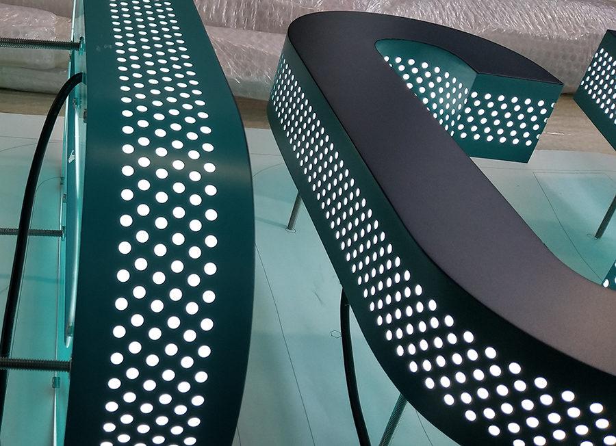 LED外露发光字是一种比较常见的发光字种类,顾名思义就是LED光束可以通过穿孔的形式发出来的发光字,一般来说,外露发光字又可以分为光束通过穿孔发出的发光字和led灯珠直接外露的发光字。第一种就是LED光源本质上还是在发光字的内部,也就是字壳的内部,但是字壳上是开孔的,所以光束可以通过孔位直接发出;第二种就是LED光源直接卡在穿孔的孔位上,也就是光源本身外露的,这种发光字相对第一种来说更加常见。LED外露发光字的制作即铁皮字,不锈钢字,铝字,钛金字表面用激光冲孔机冲孔配装上LED单颗防水灯串。制作LED外露发光字的常用材料有:亚克力板,镀锌板,不锈钢,铝板,钛金板、LED灯等。