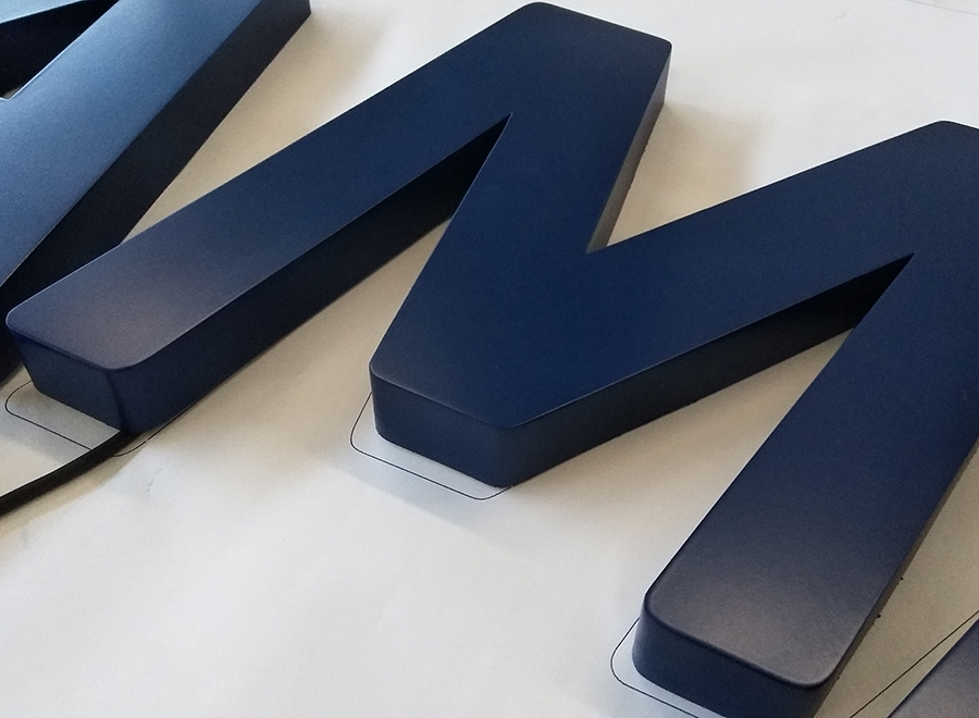 铁皮烤漆背发光字的字壳主要采用铁皮,通过专业机器切割成字形,然后进行精工打磨、烤漆等工艺处理。