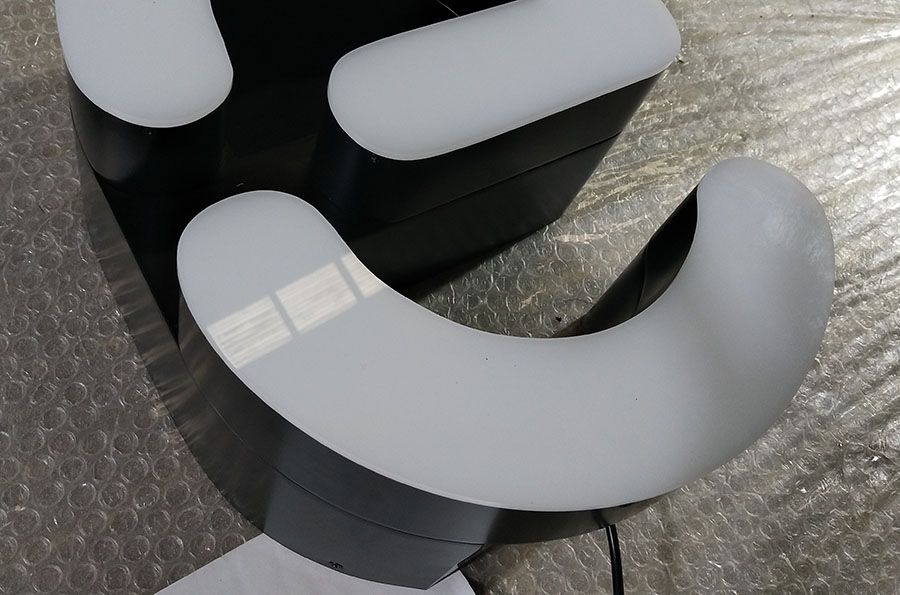 无边框发光字是发光字里面一个比较重要的分支,因为很多使用场合的发光字不需要发光面的表面有边框的干扰,所以倾向采用无边框字,无边框发光字制作安装注意事项主要有以下5个: