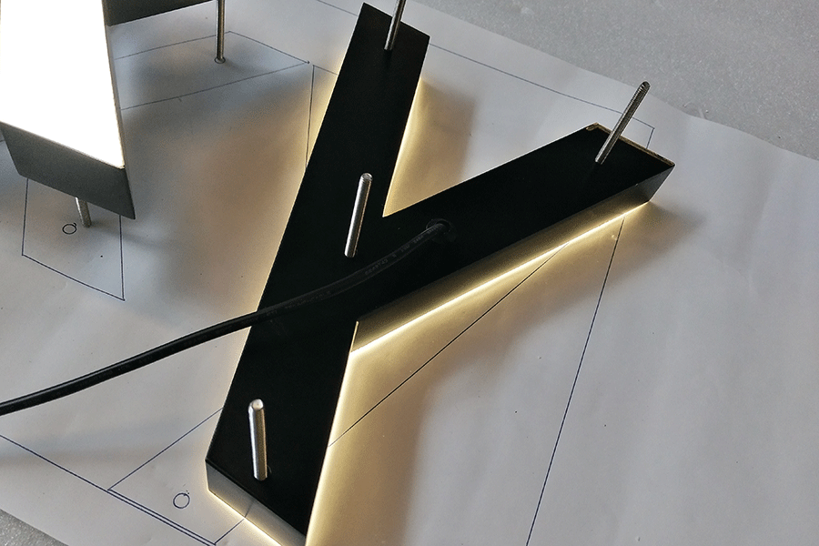 常用的做法是,不锈钢折弯打磨精工制作,内置LED光源,字底用亚克力刻成字形(也有不套亚克力底的)。基底一般采用磨砂亚克力,背光更亮。