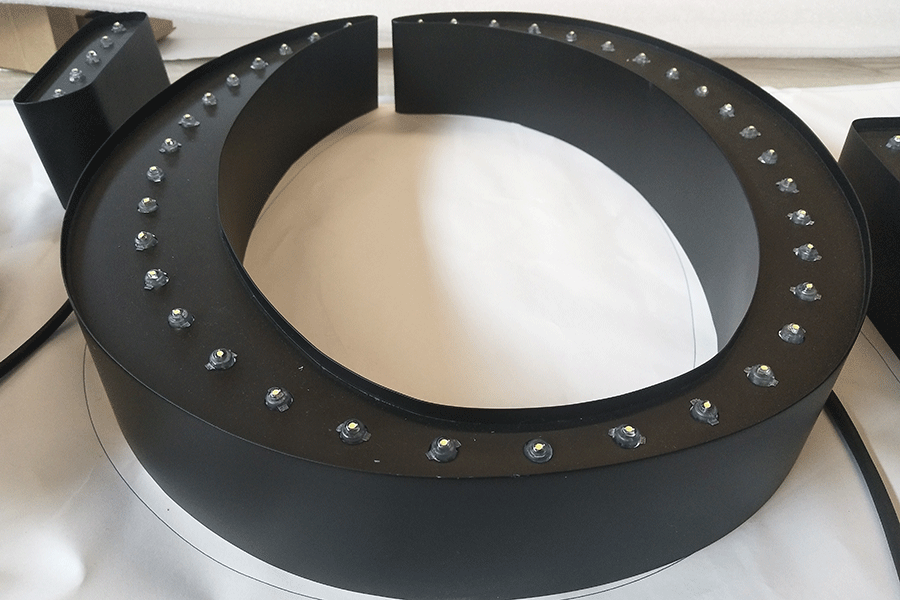 外露灯泡发光字采用的是LED灯泡和不锈钢穿孔板连接组合的立体字,也可以叫做点阵发光字。外露灯泡发光字是不少门头招牌比较喜欢的产品类型,下面我分享一个典型的外露灯泡发光字制作步骤流程: