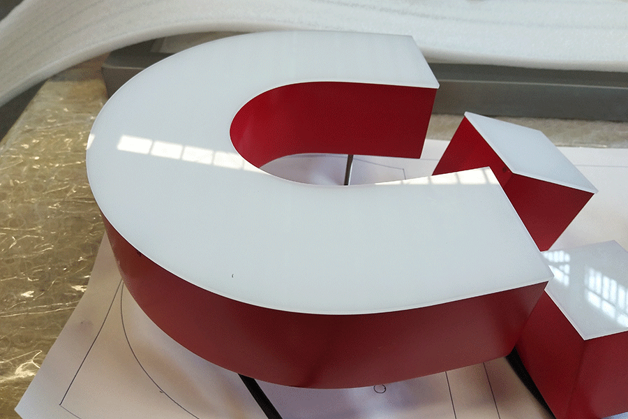 安装亚克力发光字第三步:将亚克力发光字一个一个穿透入孔们上,用酸性玻璃胶(热熔胶)粘贴好在对应的位置。如果是大字(或者是户外高空有阳光晒的招牌)我们建议用手电打3mm螺丝钉固定,这样才比较放心。