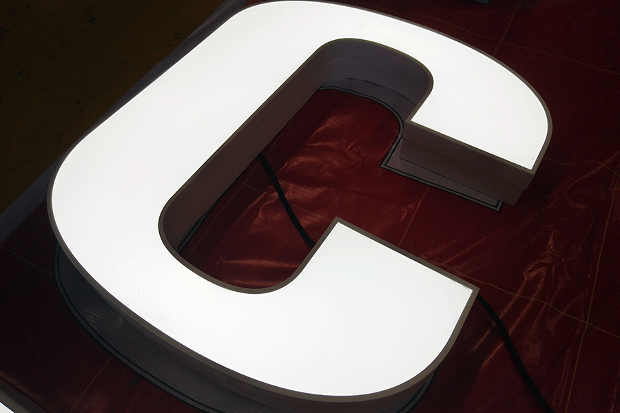 3.正面的发光字,就是正面会发光,一般正面的材质以亚克力为主,还有就是冲孔的字,采用的技术上也都是和侧面的工艺有相识之处