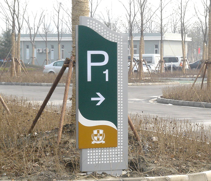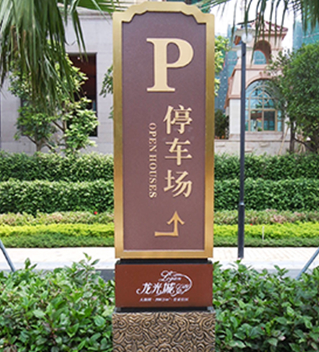 2.停车场导向标识系统从具体设计要素分析,是指以文字、图形、符号、色彩、形态、造型功能等构成的视觉系统,用以标明环境内容、空间功能、方向线路等的功能性设施。导向标识是构成整个环境的重要组成部分,是将环境和视觉形象工程融为一体的有机体。其系统化的规划和人性化的设计,能为公众提供更贴心、高效的服务。