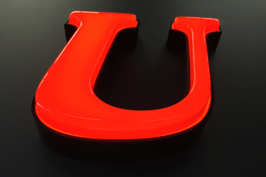 吸塑发光字的板面通常采用亚克力板吸塑成型,其色彩丰富多样,可根据需求选择不同颜色的亚克力板材,