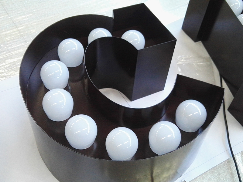 LED灯泡发光字的概念和特点我们已经介绍得比较清晰了,灯泡发光字亮度上比普通的冲孔的发光字要高,制作的成本也是比普通的要高,大型的灯珠灯泡发光字针对要求亮度高,效果好的中高端客户群体。效果是比较的亮。现在楼顶上采用2cm或者3cm的大型冲孔的光源做的也比较的多,很远很远都可以看到醒目的灯泡字。这里有个很重要的细节,那就是灯泡发光字制作方法,方法有哪些呢,下面从5个方面进行分析: