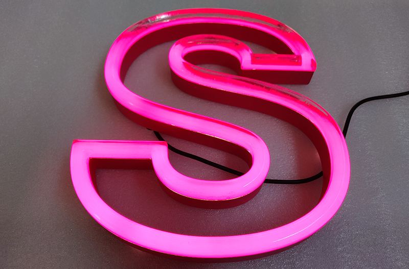 LED霓虹发光字就是采用led霓虹灯制作的发光字,也被人称作LED霓虹字,通常来说发光字字壳部分制作方法与常规的发光字是一样的,只是是灯条的使用上有所差异,霓虹发光字一般采用的是软管型LED光源,可以弯曲,就可以把发光字的造型轮廓凸显出来。LED霓虹发光字产品优势主要有以下6个方面: