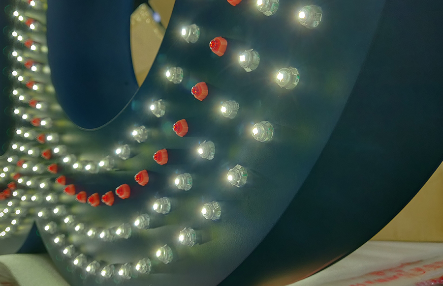 4、易维护,外露字的灯珠是可以从外面拆出来的,而吸塑灯箱字侧需要将字拆出来。对于高楼大厦上面,拆开字维修好又装回去,需要一笔很大的成本,如需要搭架子或者租用吊篮才能做到。