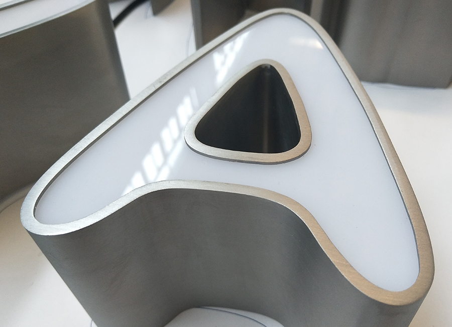 由于材料尺寸限制,因此要做比较大的字的话,就必须要进行一个拼接,所以这也就很考验金属发光字制作工厂的制作工艺的质量要求,质量一旦不过关,就会出现拼接缝过大,出现大面积漏光,这样使得金属发光字就比较难看了。