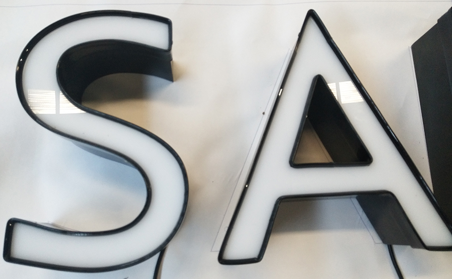 外露发光字由于灯是外露的,它不受其它东西的影响,因此,亮度要比吸塑发光字要高。成本相对较低,常规的吸塑字也称为灯箱字,它是由两套字和里面的灯构成的。因此,成本相对较高。而LED外发光字它可以由铁皮或者不锈钢做一套字,然后通过打孔装灯,成本节省了。发光均匀,由于吸塑字受笔画大小的局限,普通模组装不下去的笔画就没有办法,因此,会出现一个字亮度不一的地方。而外发光字是装LED单颗灯上去,因此,LED外发光字不存在这种现象(除非灯坏了)。易维护,外露字的灯珠是可以从外面拆出来的,而吸塑灯箱字侧需要将字拆出来。对于高楼大厦上面,拆开字维修好又装回去,需要一笔很大的成本,如需要搭架子或者租用吊篮才能做到。
