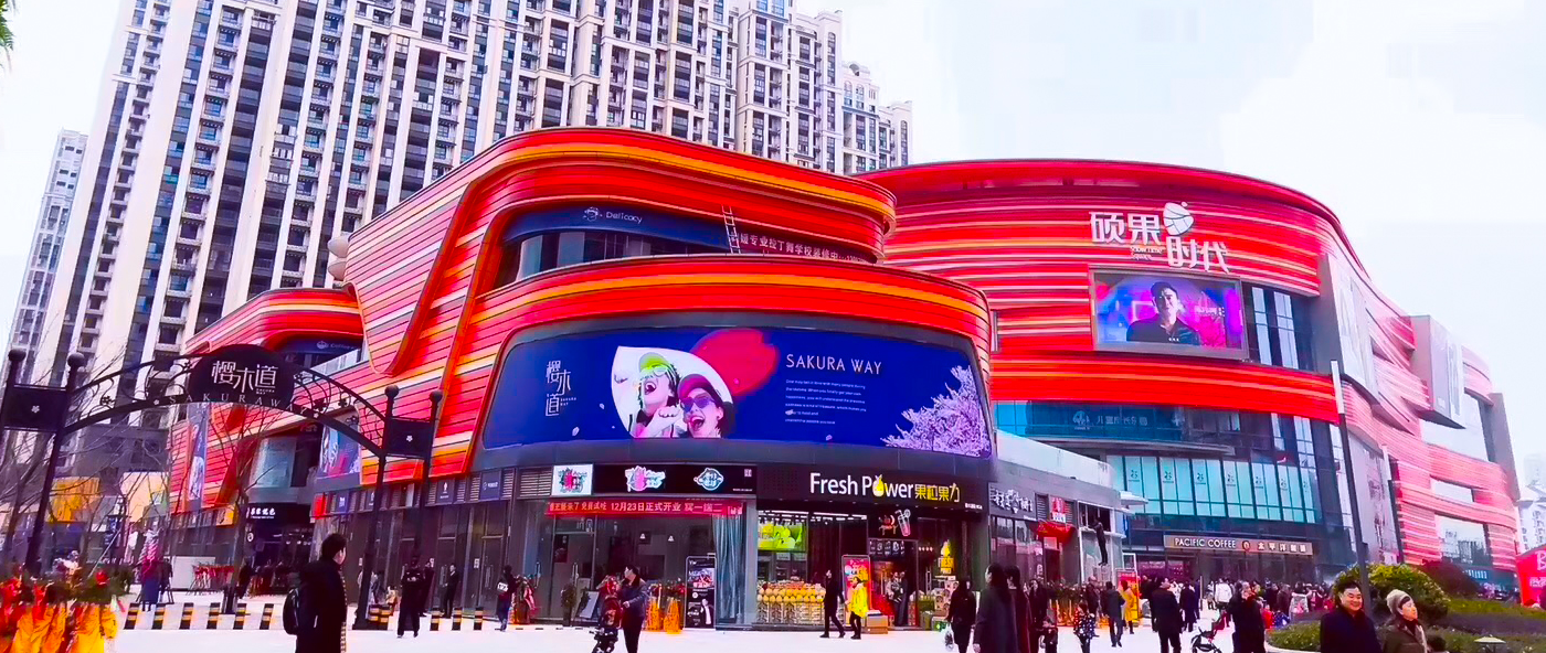 大型标识主要用于场所形象识别、名称标识,往往设置在建筑物表面或楼顶上,或者以大型立式标识形式竖立在建筑物前或商业休闲广场上,体量一般都在二三层楼以上的高度,大气而富有力量感,给人以极强的视觉冲击力,不仅具有识别作用,还可起到形象宣传的作用。对于受众而言,不管是近距离的接触还是远距离的视觉感受,都具有很强的识别性。