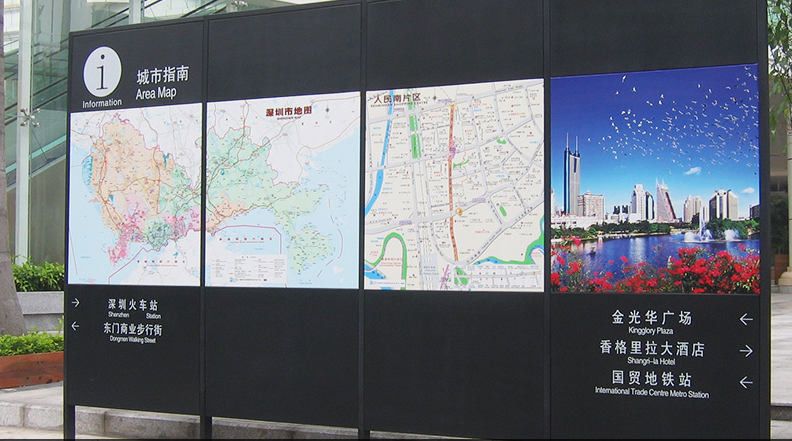 (3)环形放射式道路网,是道路交通网的一种基本形式。放射式道路网是由核心点向四周放射形成主干道,并配以环形次干路来形成的路网形式。我国近年来兴起的许多中央商务区(CBD)多为此类路网形式。环形放射式道路网适合标识系统的网状设置形式或阶层状设置形式。
